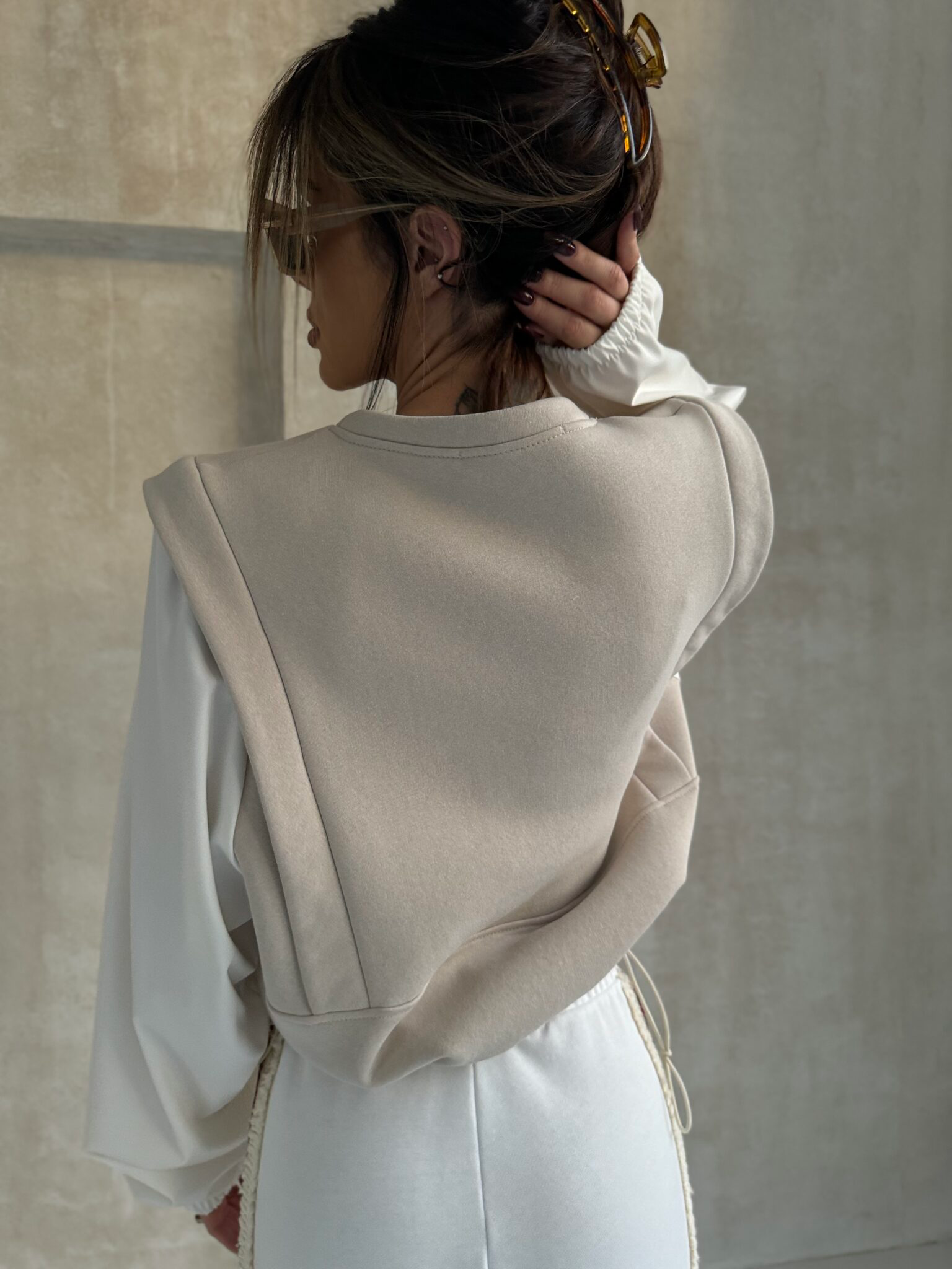 Unikalna bluza łącząca wygodę sportowego stylu z elegancją koszuli. Model wyróżnia się koszulowymi rękawami, które nadają mu oryginalnego charakteru, oraz ściągaczami po bokach, zapewniającymi idealne dopasowanie i komfort noszenia. Ta hybrydowa bluza świetnie sprawdzi się w stylizacjach casualowych, dodając im odrobiny szyku. Połączenie klasyki koszuli z luźnym fasonem bluzy to doskonały wybór na co dzień i na spotkania w mniej formalnym stylu.